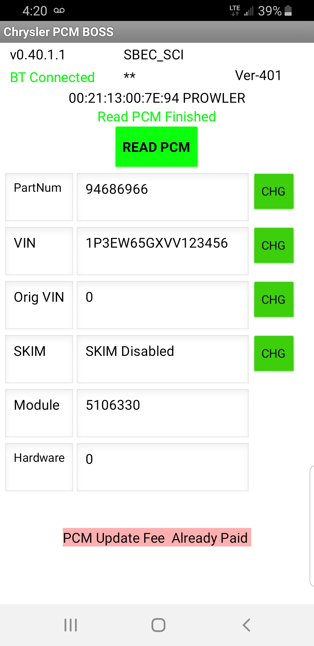 Advanced Android APP that allows you to Update setting in your PCM.